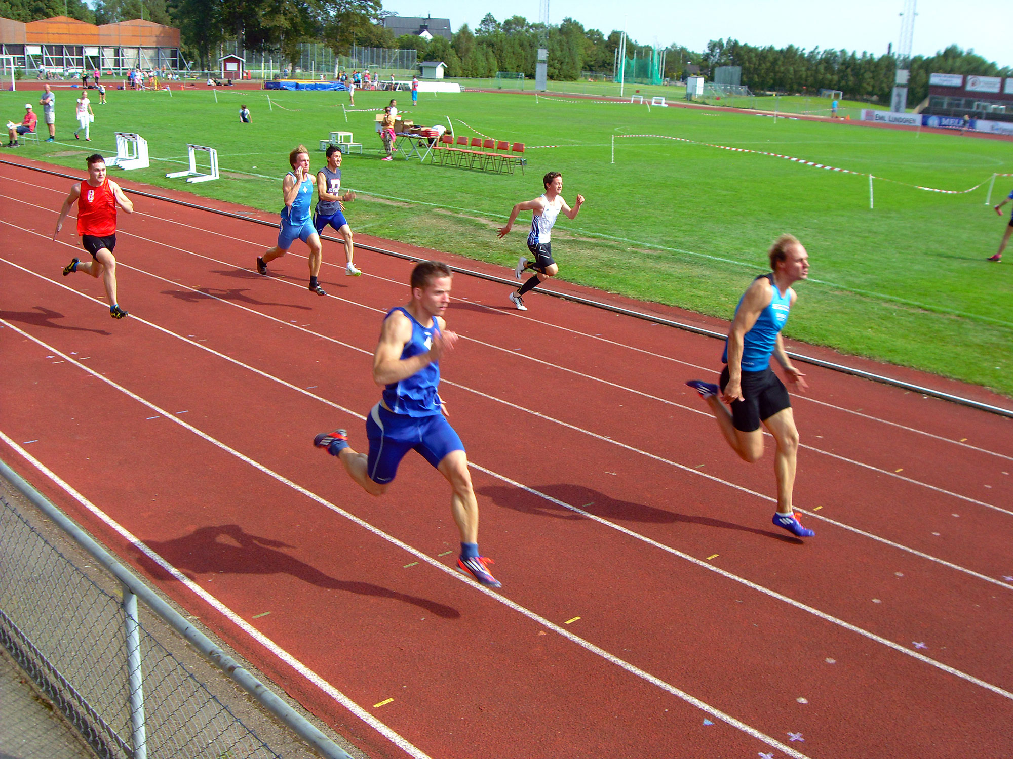 Bra förhållanden (ganska varmt och vindstilla) och stimulerande konkurrens borgade för snabba lopp. Tyvärr inga mellantider men Magnus gick som vanligt ut hårt och ledde sitt heat inför upploppet där han fick se sig omsprungen av två löpare. Han belönades ändå med nytt pers men kände att ännu bättre tider fanns i kroppen med en något lugnare öppning.