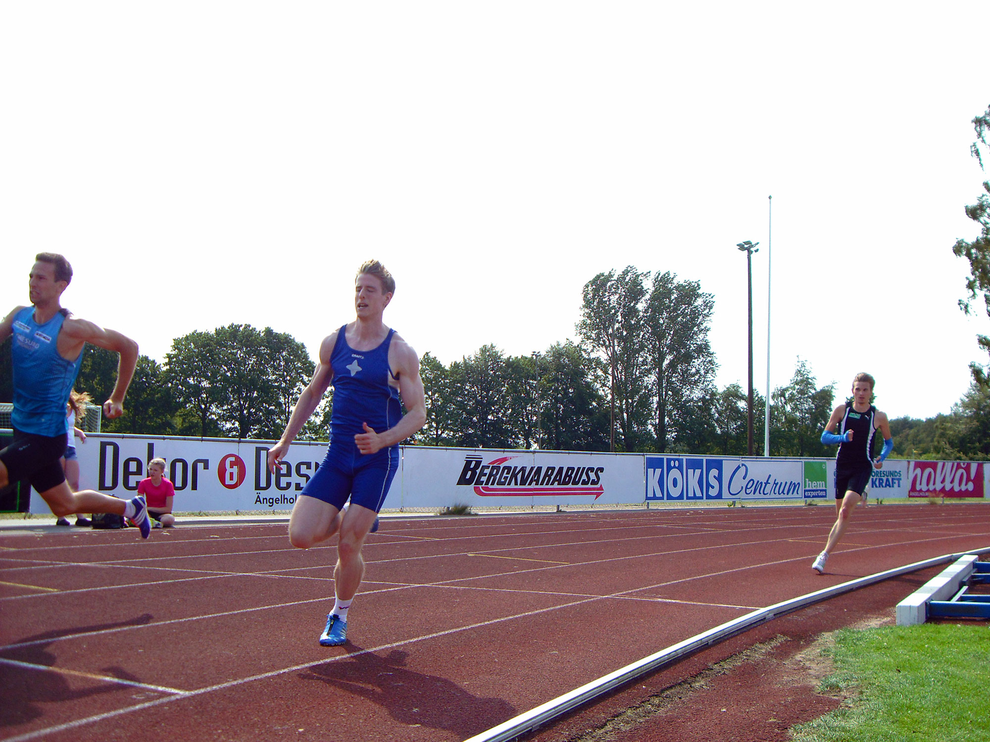 Redan i första heatet visade Adam att det gick att springa snabbt, men både Björn och Philip kom direkt rejält på efterkälken och deras tider var sämre än väntat. Björn sprang nästan lika snabbt i motvind för tre veckor sedan och även om Philips tid var en bra bit under förra sommarens pers, så hade han väntat sig mer av säsongsdebuten. Bakom sig har de dock en respektive två veckors missad träning pga förkylning och allt talar för att Philip kommer att persa under godkända förhållanden om han bara får tillräckligt med tävlingstillfällen.