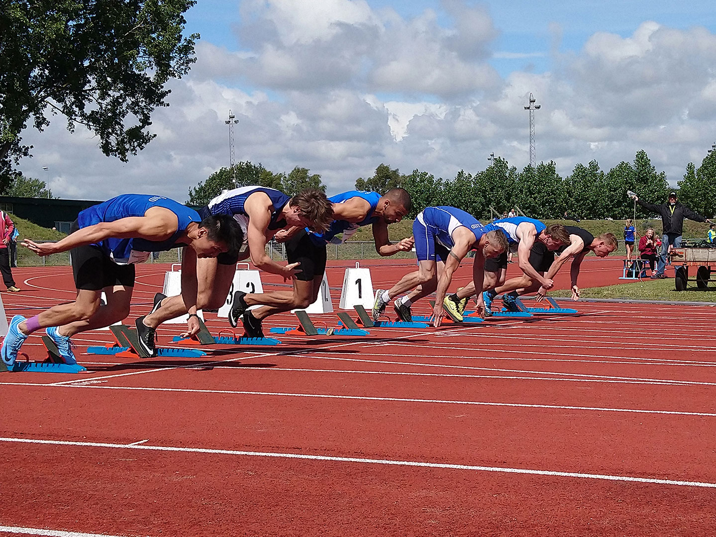 Stark sidvind i försöken men inte heller någon lysande löpning av någon. Gustav har visat fin form första 20 m på träning men är lite för tung och svag i höftböjarna för att hantera ett fullt 100m lopp. Grunden finns där dock för mycket bättre tider. Dante’s time was quite okay considering the wind but he was dissatisfied with the start and felt that he never got up to speed. Philips tider var också helt okej med tanke på missad träning och en svag start i finalen som ledde till stressad & krängande löpning.