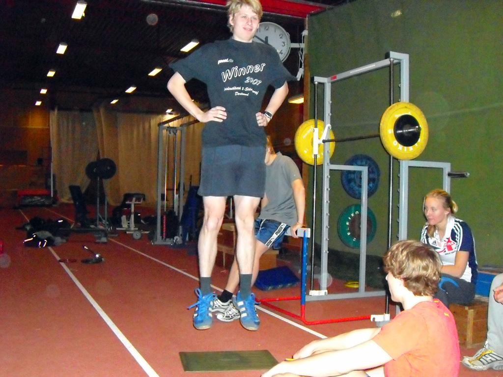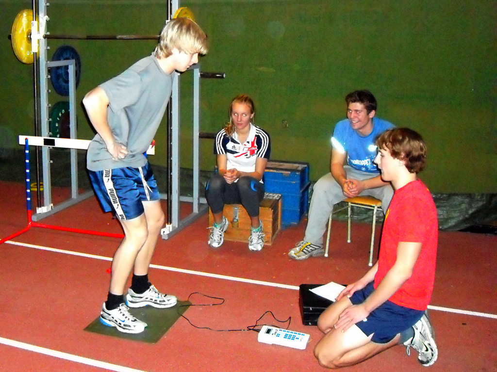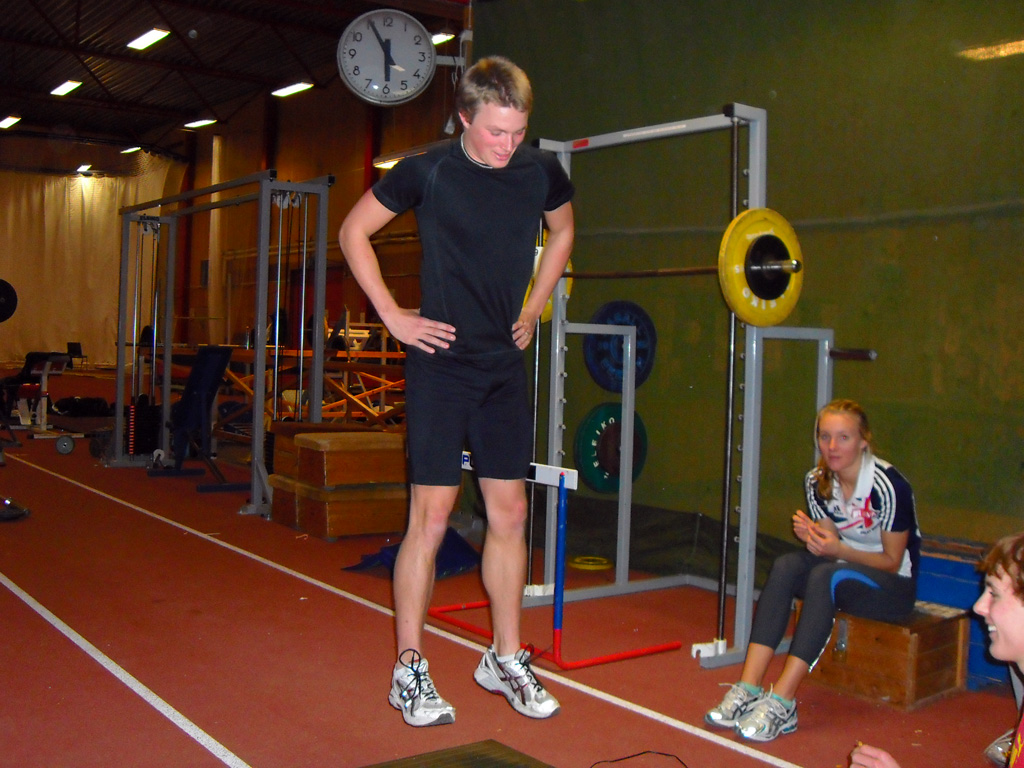 Viktor B utförde experiment med snabbkreatin och olika former av vertikalhopp. Tyvärr blev de flesta bilderna kassa eftersom det är så mörkt i hallen.